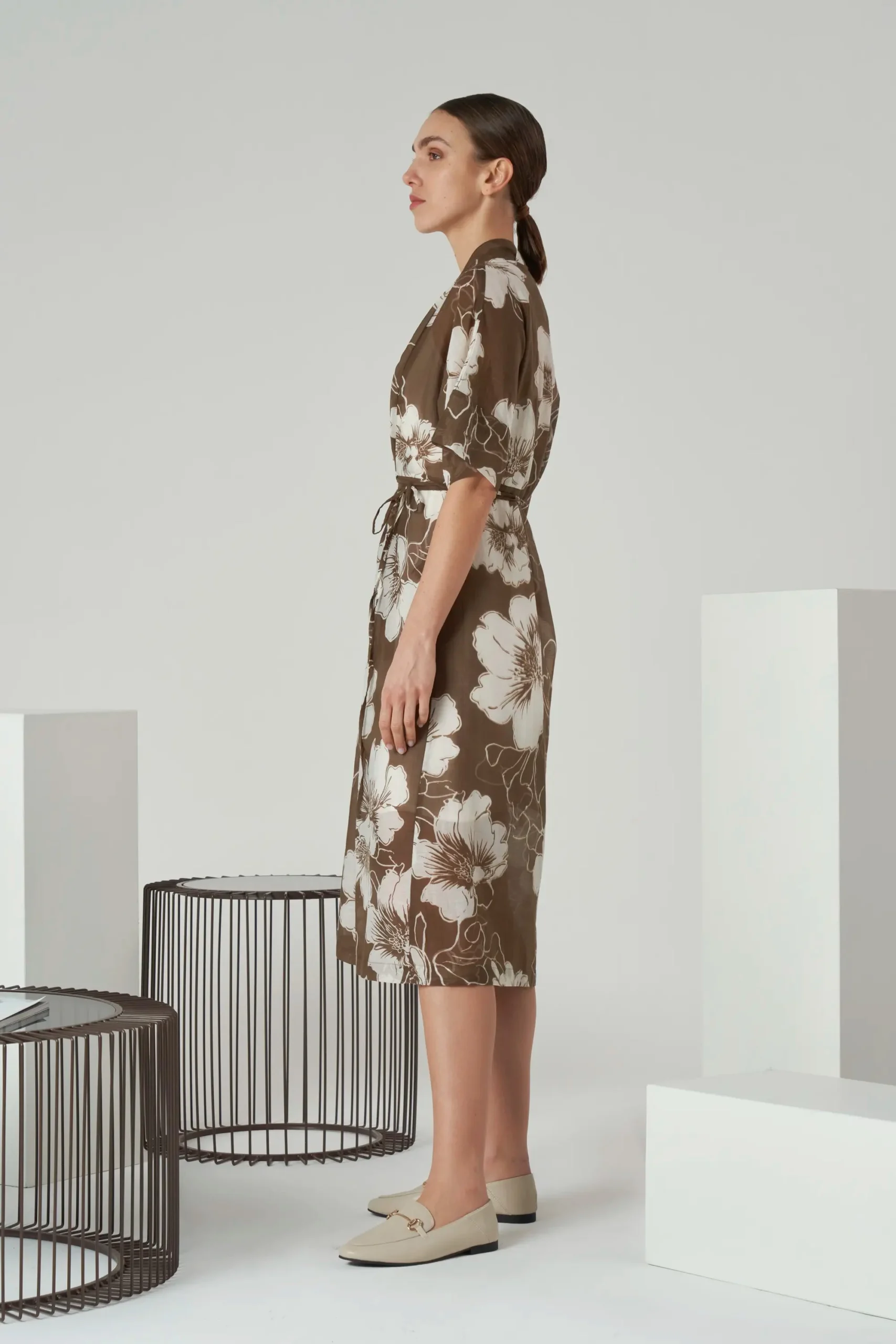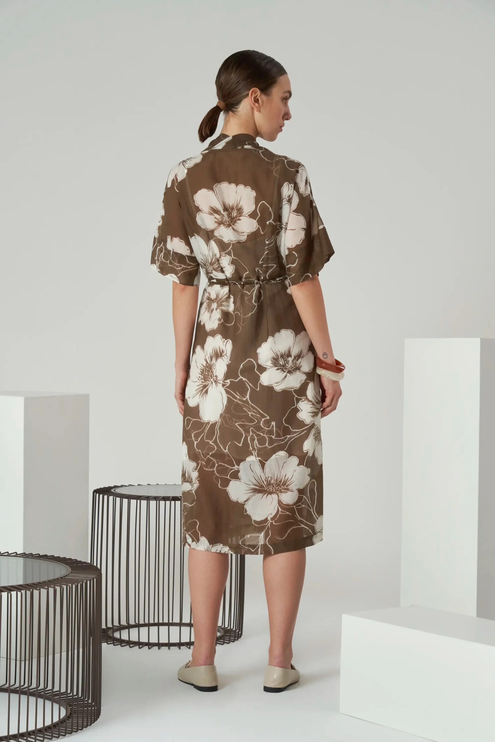 Printed dress in cotton-silk blend with relaxed silhouette.
