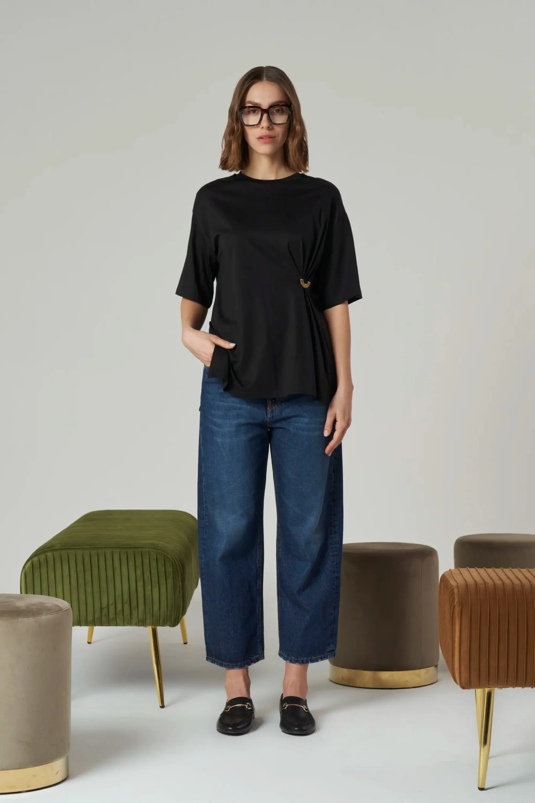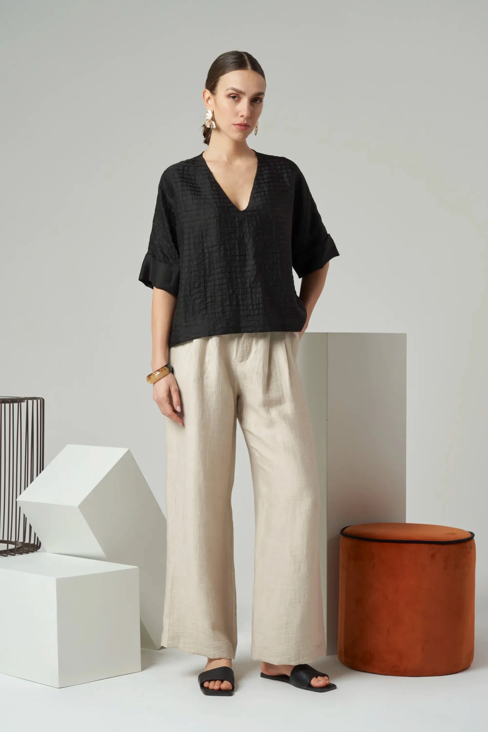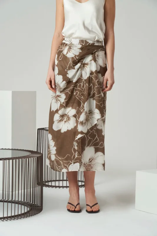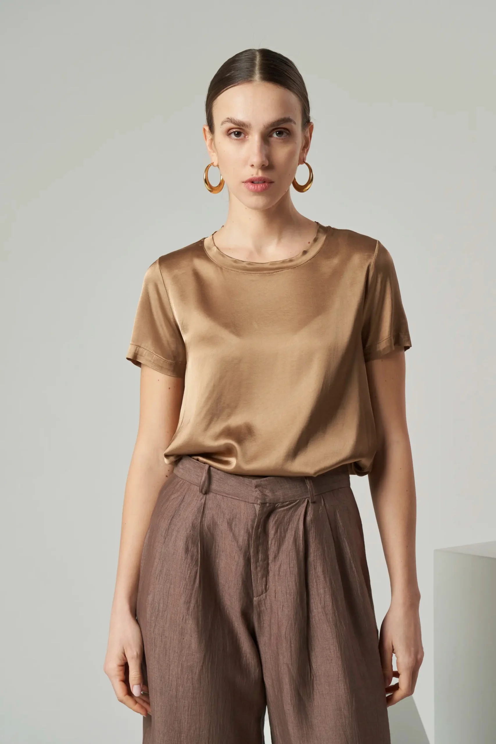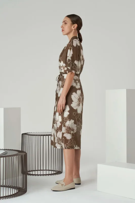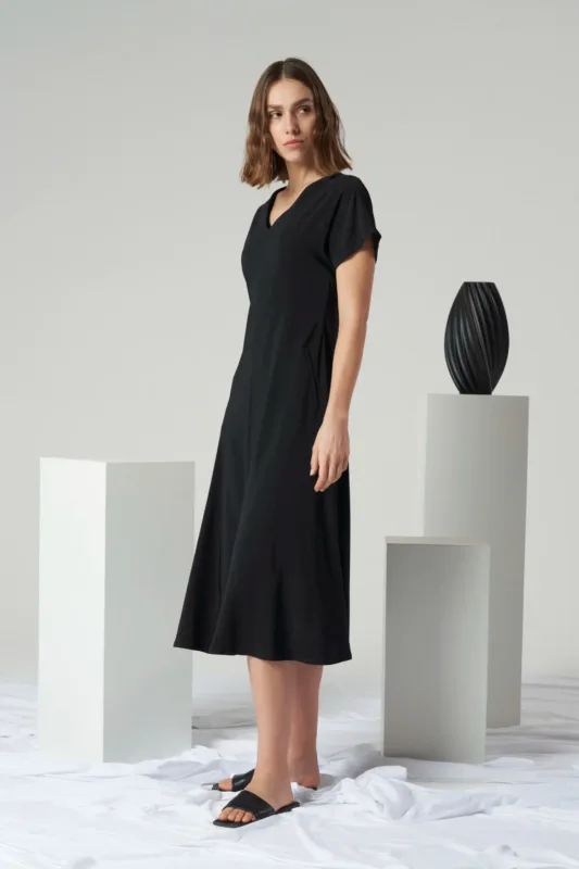 Fluid midi dress in cupro-viscose blend with relaxed silhouette.